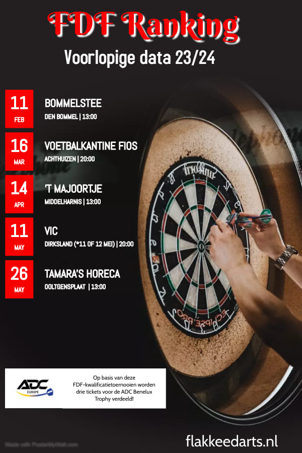 16 Maart is de FDF Ranking darten bij FIOS. Kom gezellig langs!